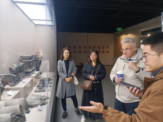 研讨结束后,Andreas Stoffers教授在教研室教师陪同下,先后走访上河书院与非物质文化遗产中心。过程中,教授深入了解学校“立足本土文化、培养国际化应用型人才”的办学定位,重点考察了上河书院的跨文化教学场景搭建、非遗中心的实践教学资源开发情况,对学校将中华优秀传统文化融入商科人才培养的特色举措给予高度认可。