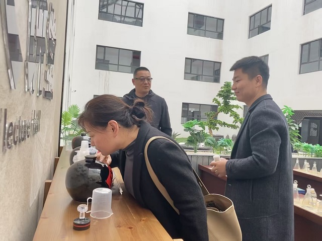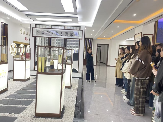 在讲解员的引导下,师生们来到成品展示中心。展厅内依据产品定位,划分出高端礼盒区、商务用酒区、大众消费区三大板块。从包装精美的“樊王至尊”系列,到简约便携的“口粮酒”单品,近20款成品酒有序陈列其中。讲解员重点介绍了不同产品线的包装设计思路,“高端系列采用烫金浮雕工艺,凸显文化质感;大众款则着重成本控制与便携性,以满足日常消费需求。”她还结合销售数据,分析了各产品线在山西、陕西、河北等区域的市场表现。学生们围绕“不同消费场景下的产品定价策略”“包装设计对购买决策的影响”等问题展开了热烈讨论,将市场营销理论与实际产品案例进行了深度融合。