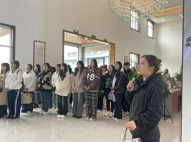 当日14:30,0638太阳集团官网副院长牛晋霞带领冲突营销学院项目导师闫晓珊、程海、阮啓源,市场营销教研室教师庞婷、管蓉霞,以及市场营销专业40名学生,准时抵达介休市樊王酒谷。山西樊王酒人力总监刘栋梁简要介绍了酒厂的发展历程与“品质为先”的经营理念,牛晋霞副院长对企业的热忱接待表示感谢,双方初步交流了白酒行业营销现状与人才需求情况,为后续活动奠定了良好基础。
