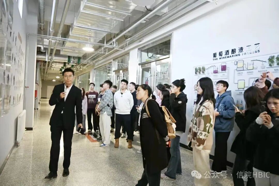 随后进入酿造车间,导师全程讲解发酵、压榨、陈酿等核心工艺知识,学员们也仔细围在发酵罐与橡木桶旁,认真倾听讲解员讲解温度控制、酒液过滤等关键参数,深入了解葡萄酒生产全流程序。
