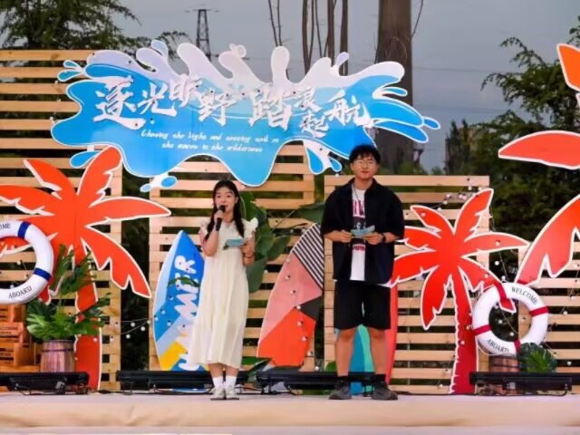 到了现场,面对着满场观众,我紧张的双腿发抖。刚开始的导入环节,我突然大脑空白,原本背熟的专业术语在脑海里突然“打结”,我攥着话筒,手心全是汗,生怕下一句词接不上来。热场词马上就要结束了,我该怎么办,我的大脑飞速转动,想着解决办法。也许是车到山前必有路吧,在热场词最后一句结束时,我想到了解决方法,跳过卡顿的“专业术语”介绍部分,直接进行下一段的主持。那场活动结束后,我的嗓子几乎哑了,但老师们却说:“第一次能撑下来,已经很棒了。”也是从那时起,我发现主持不仅是“背词”,更是“应变”,那些紧张到发抖的时刻,都成为了回忆里美好的存在。